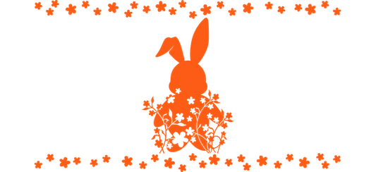 A vibrant orange bunny silhouette surrounded by floral patterns, perfect for spring or Easter-themed decorations.UV Transfers heat press transfers