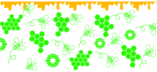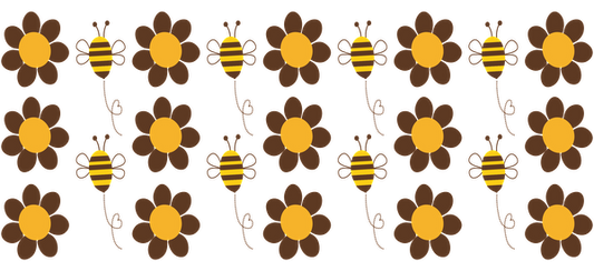 A cheerful pattern featuring alternating yellow and brown bees intertwined with simple flowers, perfect for crafting or decoration.UV Transfers heat press transfers