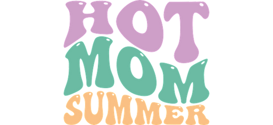 Celebrate summer with this playful "Hot Mom Summer" graphic, featuring vibrant, retro-inspired lettering in fun colors.UV Transfers heat press transfers
