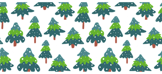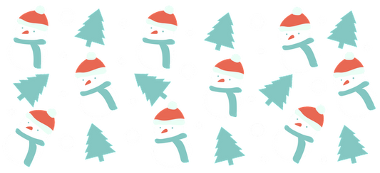 A cheerful winter-themed pattern featuring snowmen, evergreen trees, and snowflakes in light colors for a festive vibe.UV Transfersdtf regular iron