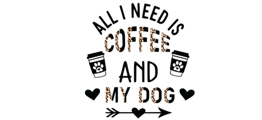 A playful graphic design featuring the phrase "All I need is coffee and pizza," complemented by coffee cup illustrations and hearts.UV Transfers heat press transfers
