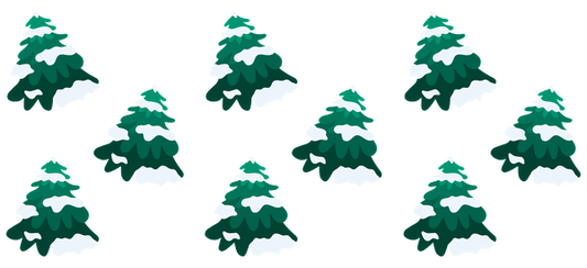 A charming arrangement of nine stylized evergreen trees, each topped with white snow, perfect for winter-themed designs.UV Transfers heat press transfers