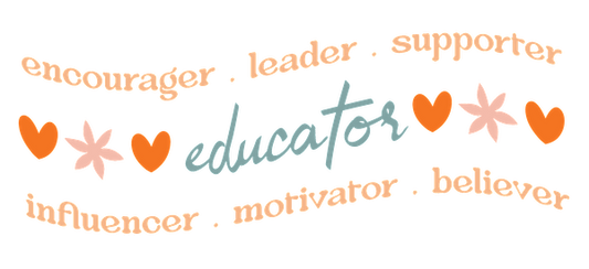 A vibrant design highlighting the word "educator" surrounded by affirming words like "leader," "supporter," and "motivator," with decorative elements.UV Transfersdtf regular iron