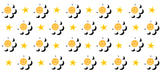 A green box filled with stars and smiling daisy pairs will cheer up any room.UV Transfers