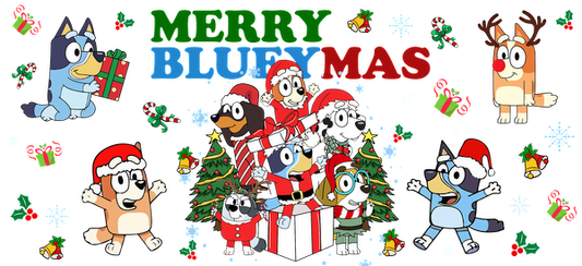 Celebrate the festive season with the cheerful characters from "Bluey," decked out in holiday attire amid Christmas decorations!UV Transfersdtf regular iron