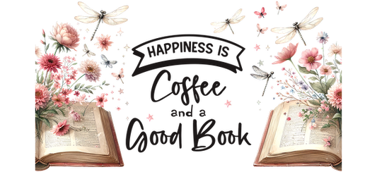 Happiness is Coffee and a Good Book text art print.UV Transfers