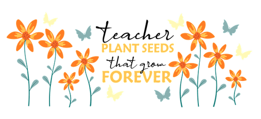 Teacher plant seeds that grow forever, typography image orange flowers.UV Transfers