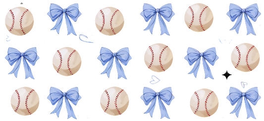 A playful pattern featuring baseballs and blue bows, perfect for a sporty and stylish design.UV Transfers heat press transfers
