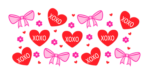 A whimsical mix of hearts and bows create a fun, colorful pattern.UV Transfers