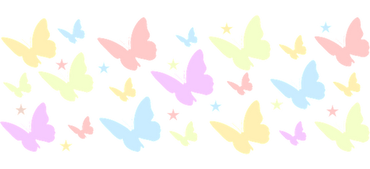 A whimsical pattern featuring pastel butterflies and stars, perfect for adding a touch of charm to any design.UV Transfersdtf regular iron