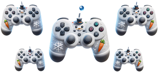 A playful set of white game controllers adorned with festive snowflakes and carrots, perfect for winter-themed gaming fun.UV Transfersdtf regular iron