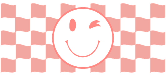 A pink and red winking smiley face.UV Transfers