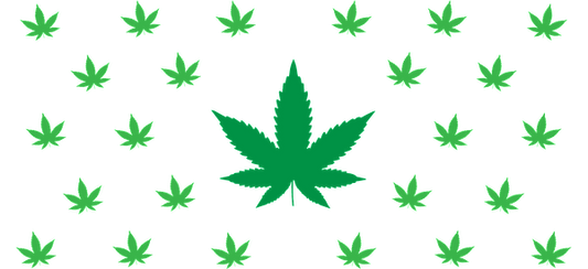 A vibrant pattern featuring multiple green cannabis leaves on a black background, creating a striking visual effect.UV Transfersdtf regular iron