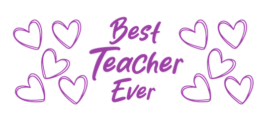 Purple heart design with the phrase Best Teacher Ever on a dark green background.UV Transfers