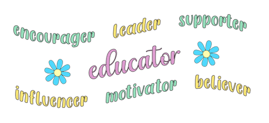 Here is Showing colourful text with the word educator and blue flowers.UV Transfers