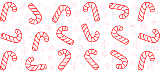 A cheerful pattern featuring red candy canes and white snowflakes, perfect for adding a festive touch to holiday decor.UV Transfersdtf regular iron