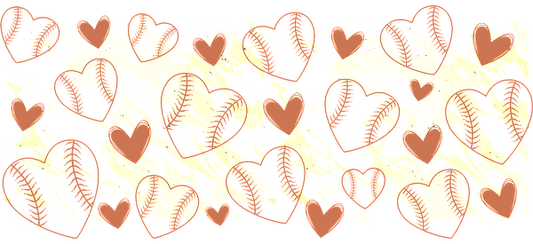 A playful pattern featuring baseball-themed hearts in soft colors, perfect for sports lovers with a touch of charm.UV Transfers dtf prints