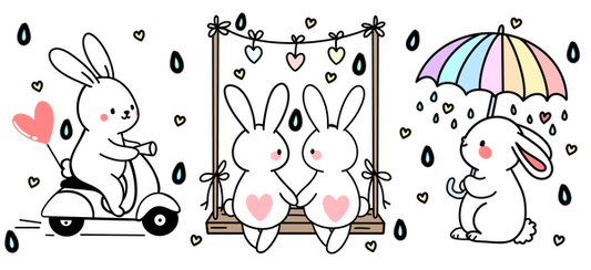 A pair of white and pink rain boots covered in hearts.UV Transfers