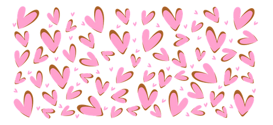 A lovely pink, heart-shaped wallpaper on a green background.UV Transfers