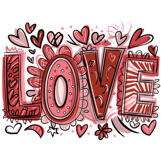 Love in pink and red antiqued stylized with hearts.DTF Transfers