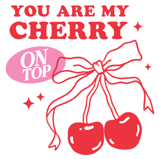 A charming graphic featuring the phrase "You Are My Cherry On Top" alongside cute red cherries and a playful ribbon.DTF Transfers