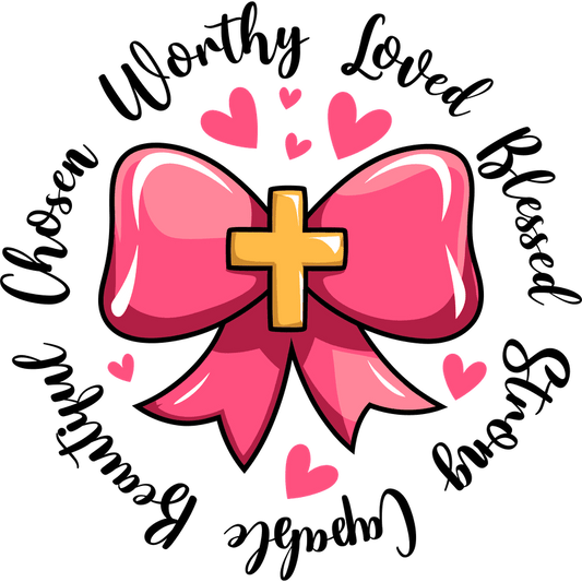 Regular price From £0.75 GBPRegular priceUnit price / per£2.40 GBPSale price From £0.75 GBPA vibrant pink graphic that reads "Love Like Jesus," adorned with a cute heart-patterned bow, promoting kindness and compassion.DTF Transfers
