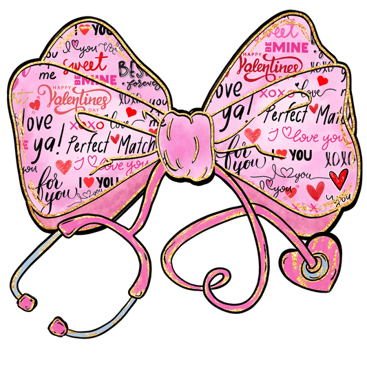 A valentine-themed stethoscope bow with love messages.DTF Transfers