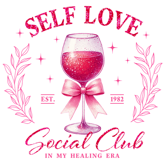 Celebrate self-love with this vibrant design featuring a glittery wine glass and playful text in pink hues!DTF Transfers