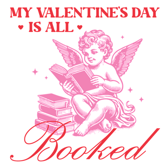 Celebrate Valentine's Day with this playful design featuring a cherub reading books, whimsically declaring, "My Valentine's Day is all booked!"DTF Transfers