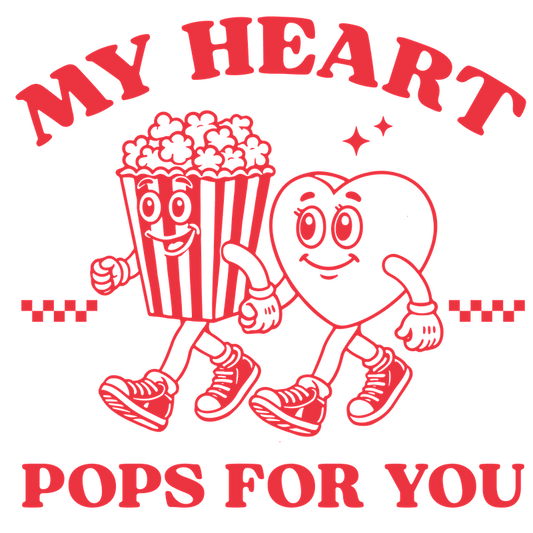 Regular price From £0.75 GBPRegular priceUnit price / per£2.40 GBPSale price From £0.75 GBPA cheerful illustration featuring a popcorn bucket and a heart character, both sporting sneakers and holding hands, with playful text.DTF Transfers