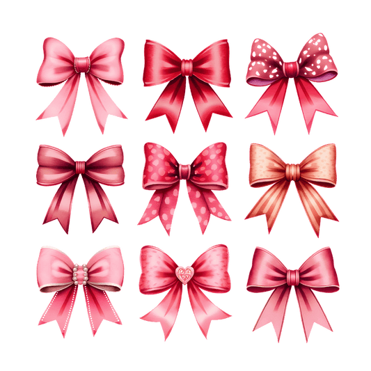 Regular price From £0.75 GBPRegular priceUnit price / per£2.40 GBPSale price From £0.75 GBPA collection of nine colorful and decorative bows in various styles.DTF Transfers