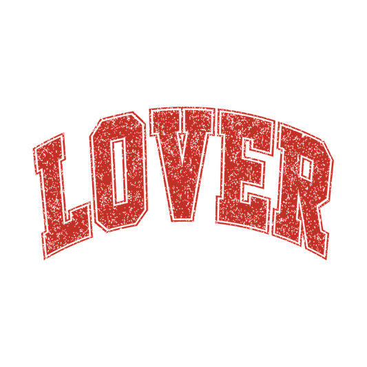 Bold red "LOVER" text in a retro style, perfect for expressing affection and adding a playful touch to any design!DTF Transfers