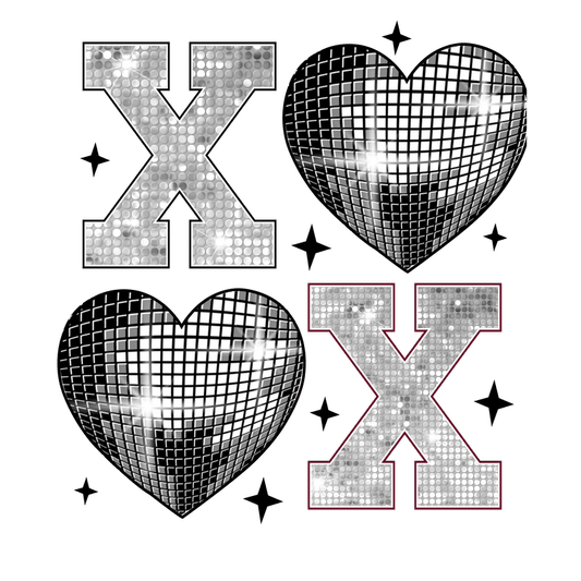 A stylish design featuring shimmering silver "X" letters and sparkling heart shapes, perfect for adding a touch of glam.DTF Transfers