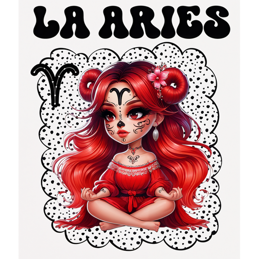 Precio habitual A partir de £0.75 GBPPrecio habitualPrecio unitario / por£2.39 GBPPrecio de oferta A partir de £0.75 GBPUna ilustración vibrante y divertida de una niña con cuernos de carnero y cabello rojo, que encarna el signo zodiacal Aries en un estilo caprichoso.