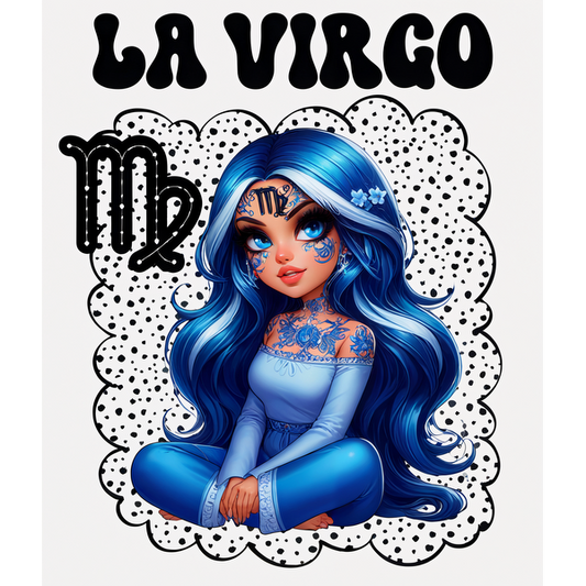 Precio habitual A partir de £0.75 GBPPrecio habitualPrecio unitario / por£2.39 GBPPrecio de oferta A partir de £0.75 GBPUna ilustración vibrante de un personaje de cabello azul sentado elegantemente con motivos del zodíaco, resaltado por intrincados tatuajes y acentos florales.