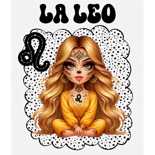 Precio habitual A partir de £0.75 GBPPrecio habitualPrecio unitario / por£2.39 GBPPrecio de oferta A partir de £0.75 GBPUna elegante ilustración de un hermoso personaje con temática de Leo, con intrincados diseños faciales, vistiendo un vibrante atuendo amarillo y luciendo un cabello largo y suelto.