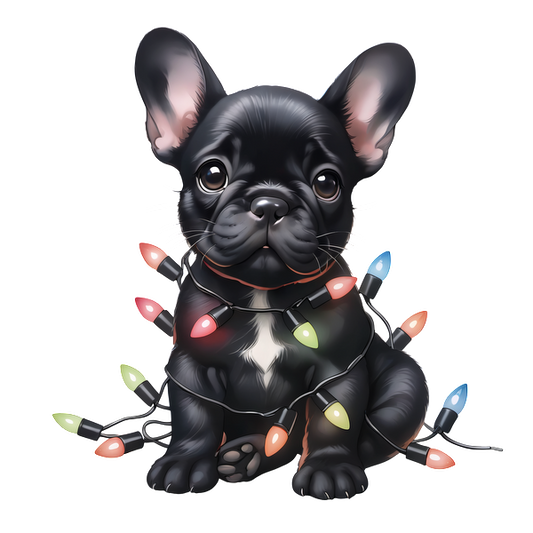 Precio habitual A partir de £0.75 GBPPrecio habitualPrecio unitario / por£2.39 GBPPrecio de oferta A partir de £0.75 GBP¡Un lindo bulldog francés negro rodeado de coloridas luces navideñas, listo para alegrar la temporada festiva!