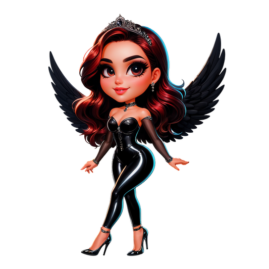 Precio habitual A partir de £0.75 GBPPrecio habitualPrecio unitario / por£2.39 GBPPrecio de oferta A partir de £0.75 GBPUn personaje animado y elegante con cabello rojo, alas negras y un elegante atuendo negro, que irradia un aura de confianza.