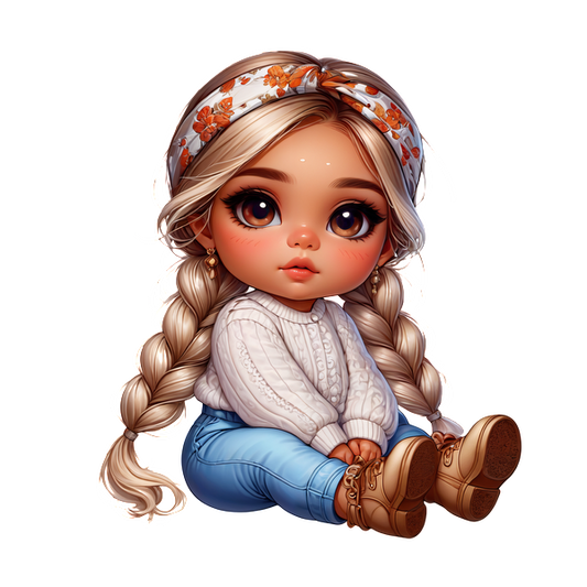 Precio habitual A partir de £0.75 GBPPrecio habitualPrecio unitario / por£2.39 GBPPrecio de oferta A partir de £0.75 GBPUna linda chica de dibujos animados con cabello rubio trenzado, vistiendo un suéter acogedor y jeans azules, acentuados por una diadema floral.