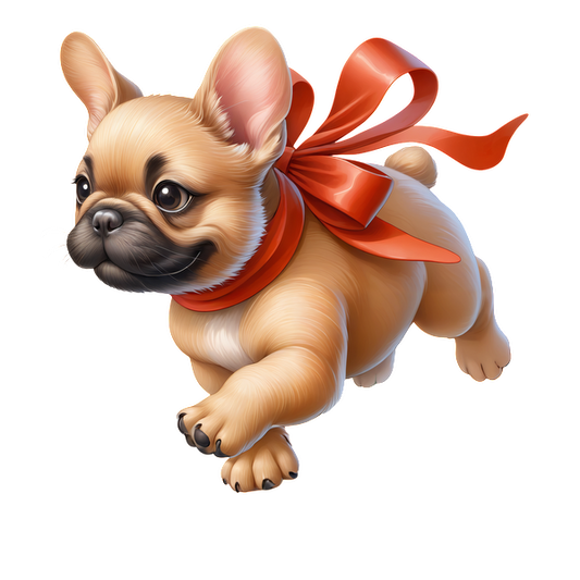 Precio habitual A partir de £0.75 GBPPrecio habitualPrecio unitario / por£2.39 GBPPrecio de oferta A partir de £0.75 GBPUn lindo cachorro de bulldog francés corre juguetonamente con una cinta roja brillante alrededor de su cuello.