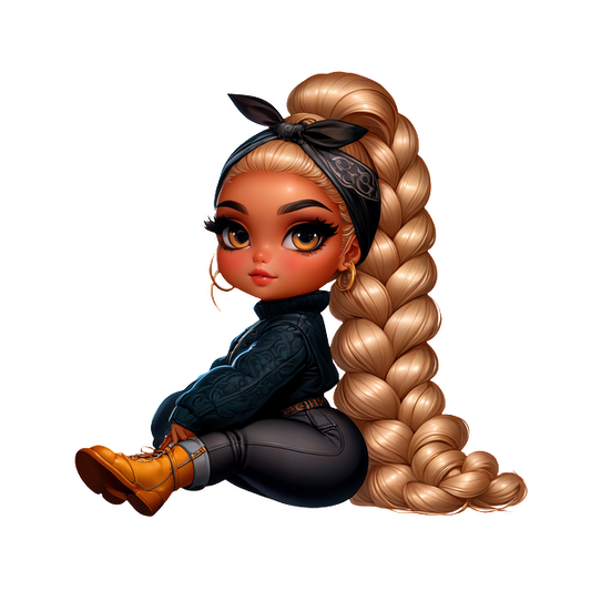 Precio habitual A partir de £0.75 GBPPrecio habitualPrecio unitario / por£2.39 GBPPrecio de oferta A partir de £0.75 GBPUn personaje elegante con una larga cola de caballo trenzada, que viste un suéter negro, jeans y botas amarillas, y que irradia una vibra moderna.