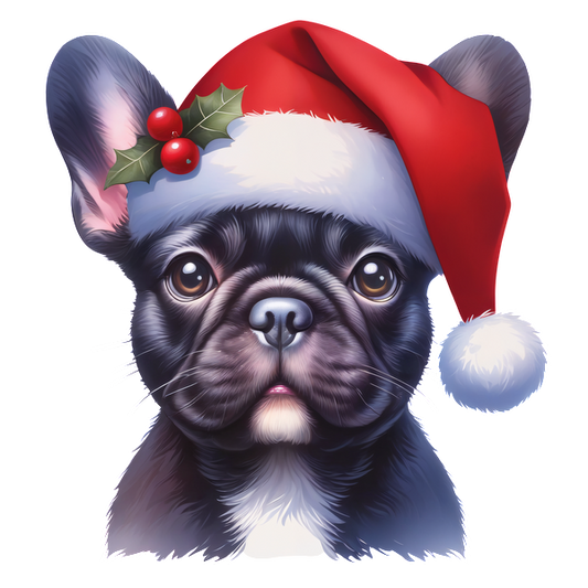 Precio habitual A partir de £0.75 GBPPrecio habitualPrecio unitario / por£2.39 GBPPrecio de oferta A partir de £0.75 GBPUn encantador bulldog francés negro con un festivo gorro rojo de Papá Noel adornado con acebo y bayas, ¡perfecto para el espíritu navideño!