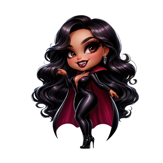Precio habitual A partir de £0.75 GBPPrecio habitualPrecio unitario / por£2.39 GBPPrecio de oferta A partir de £0.75 GBPUn personaje vampiro elegante y caricaturesco, con cabello largo y negro, que viste un elegante traje negro y una capa roja.