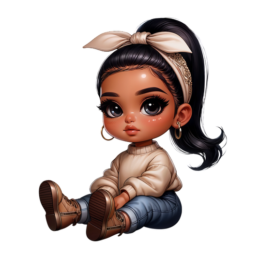 Precio habitual A partir de £0.75 GBPPrecio habitualPrecio unitario / por£2.39 GBPPrecio de oferta A partir de £0.75 GBPAdorable ilustración de una niña con un acogedor suéter blanco y jeans azules, complementado con una diadema floral y elegantes botas.