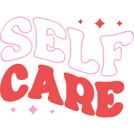 Una ilustración vibrante y divertida que promueve el concepto de "autocuidado" en letras llamativas y coloridas.