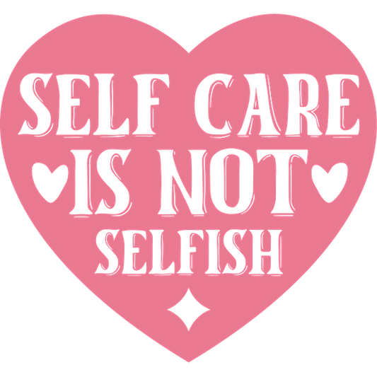 Un gráfico de un corazón rosa vibrante que declara audazmente: "El cuidado personal no es egoísta" y promueve la importancia del cuidado personal.