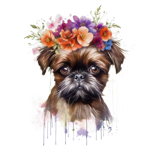 Precio habitual A partir de £0.75 GBPPrecio habitualPrecio unitario / por£2.39 GBPPrecio de oferta A partir de £0.75 GBPUna encantadora ilustración de un perro adornado con una vibrante corona de flores, rodeado de coloridas salpicaduras de acuarela.