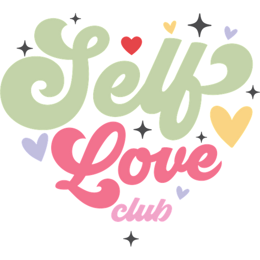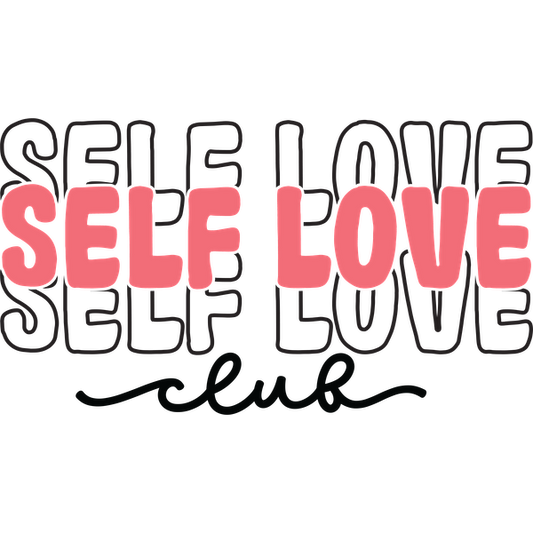 Un logotipo vibrante que presenta la frase "Self Love Club" en letras atrevidas y divertidas, que promueve la positividad y la autoaceptación.