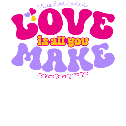 Un diseño tipográfico colorido y divertido que presenta la frase "El amor es todo lo que haces", que celebra la positividad y el afecto.