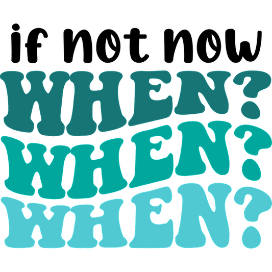 Precio habitual A partir de £0.75 GBPPrecio habitualPrecio unitario / por£2.40 GBPPrecio de oferta A partir de £0.75 GBPDiseño de texto colorido que presenta la palabra "¿CUÁNDO?" en diferentes tonos de azul y verde, creando una declaración divertida y audaz.
